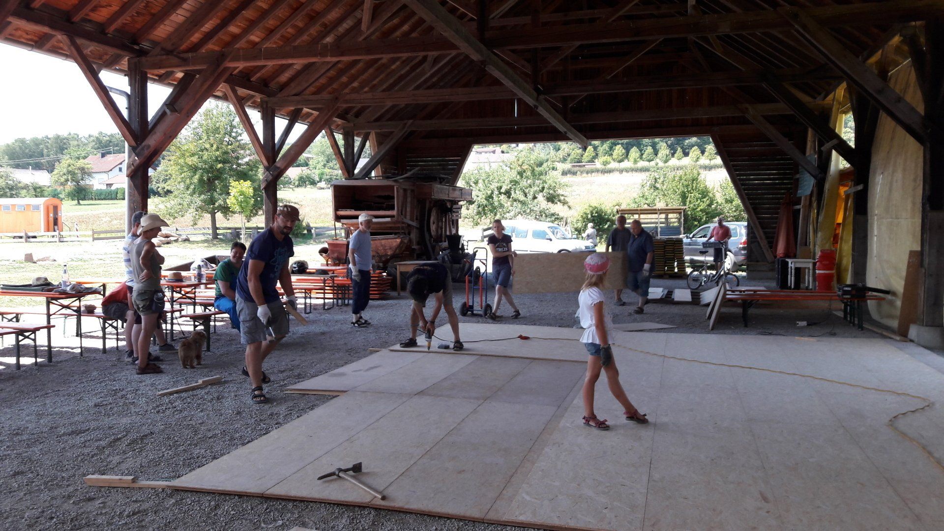 If you arrive early before the official beginning of the festival at Friday noon, you can help set up the festival infrastructure: pitching the big Party Tent, putting up the tables and benches, screwing together the boards of the dance floor and so on. Because all of the festival is organised and set up by us, not all the infrastructure will be up and running before that time.