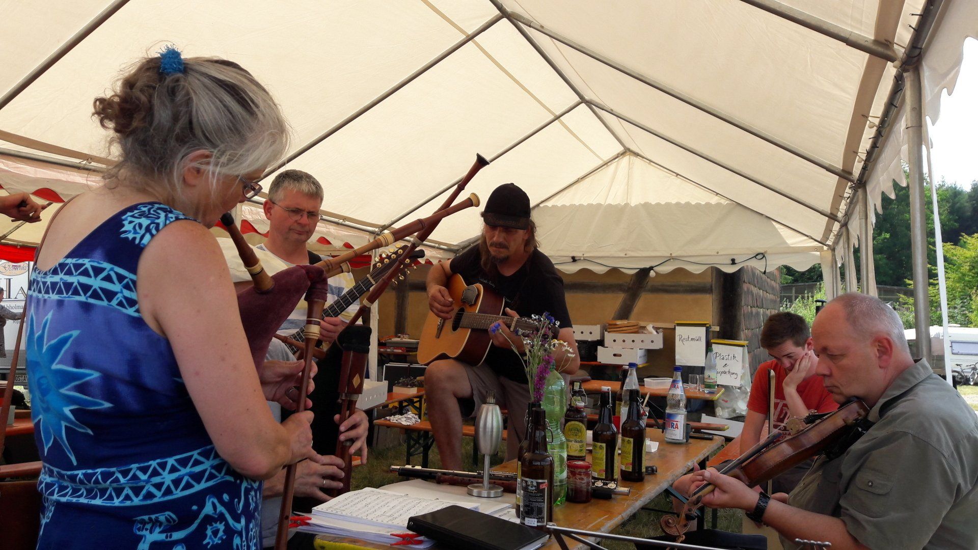 By Friday evening, most of the participants have arrived and there is time to plan the running order for the „stage“ in the big Dreschhalle (thrashing barn) on Saturday and Sunday: bands pay sets of around half an hour (Saturday 12 - 22 o’clock, Sunday 10 - 16 o’clock). So if you want to play on stage, be sure to be there.